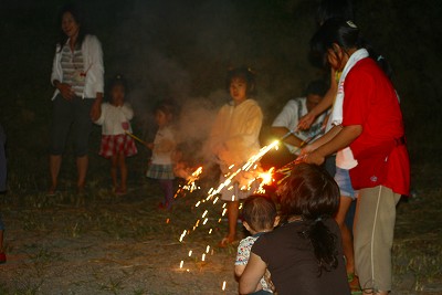 夜はみんなで花火。