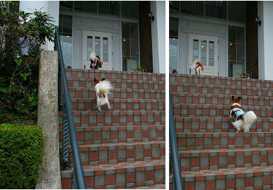 車から荷物を降ろし終えた頃パピたちはそのまま思い思いに階段を駆け上がってホテルの中へ