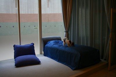 この広いベットは私が寝る~♪