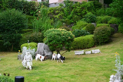 しかも、ワンたちはホテル階段下の柵を入ったところから全てノーリードで自由行動OK。