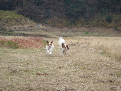 遠くまで行っては急いで戻ってくる二人♪