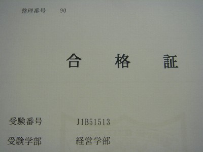 おかげさまで先週息子の大学の合格の知らせを手にしました。