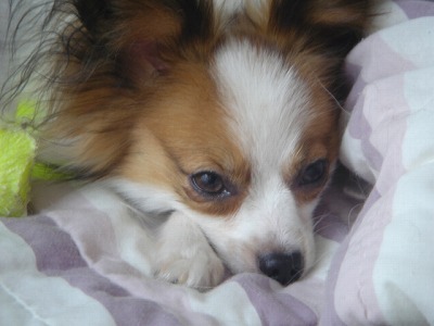 で、私が帰ってきたときのパピ~ズはしっかり快適部屋でくつろいでました。
