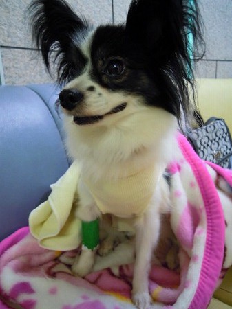 お迎えに行った時、トリマーさんに。